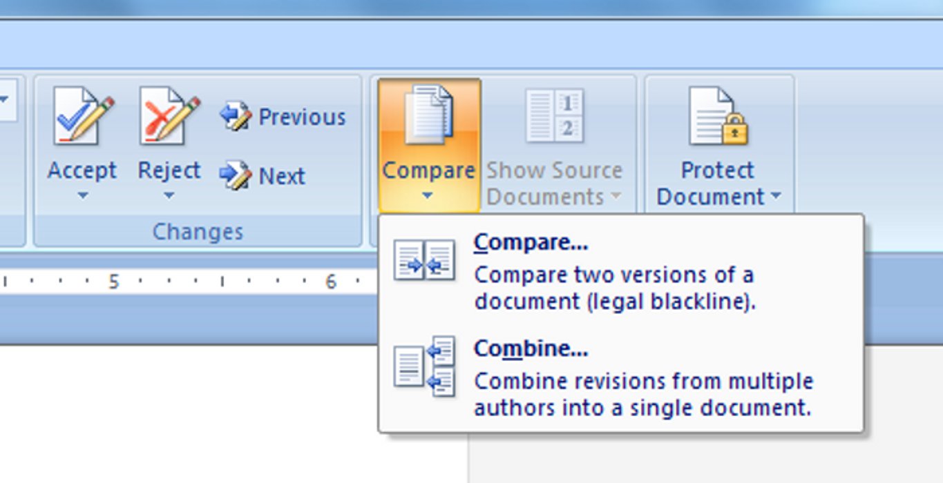 Compare allows you to look at both documents side-by-side, but it’s the Combine feature that I’m in love with. It will combine two files, place in into a brand new document and highlight the differences and you can go through and Accept or Reject the changes.