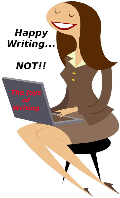I wish I was all HAPPY about writing like the woman on this blog picture, but I’m not. And what gets me even more depressed is that I know my writing skills, with every day of NOT writing, is going down the tubes!!